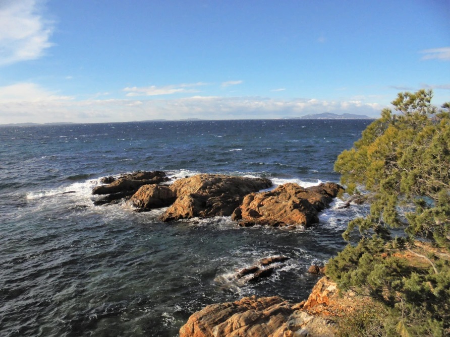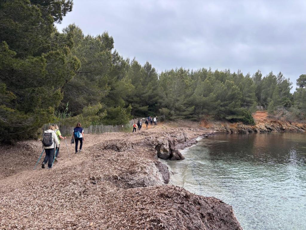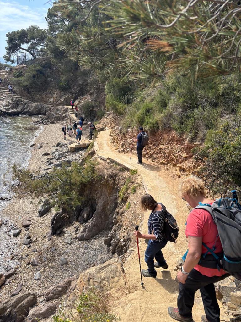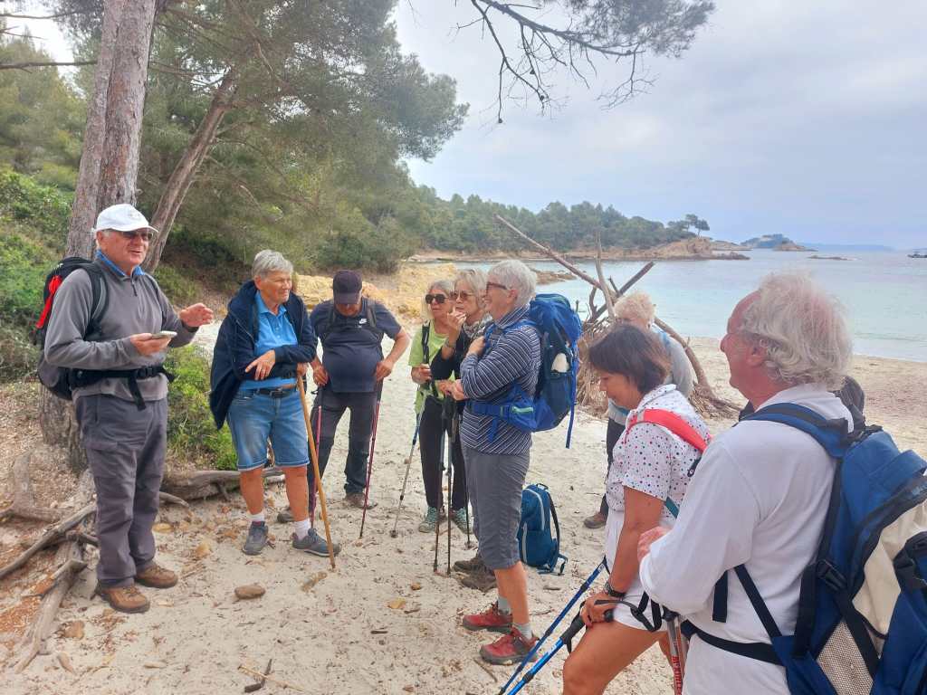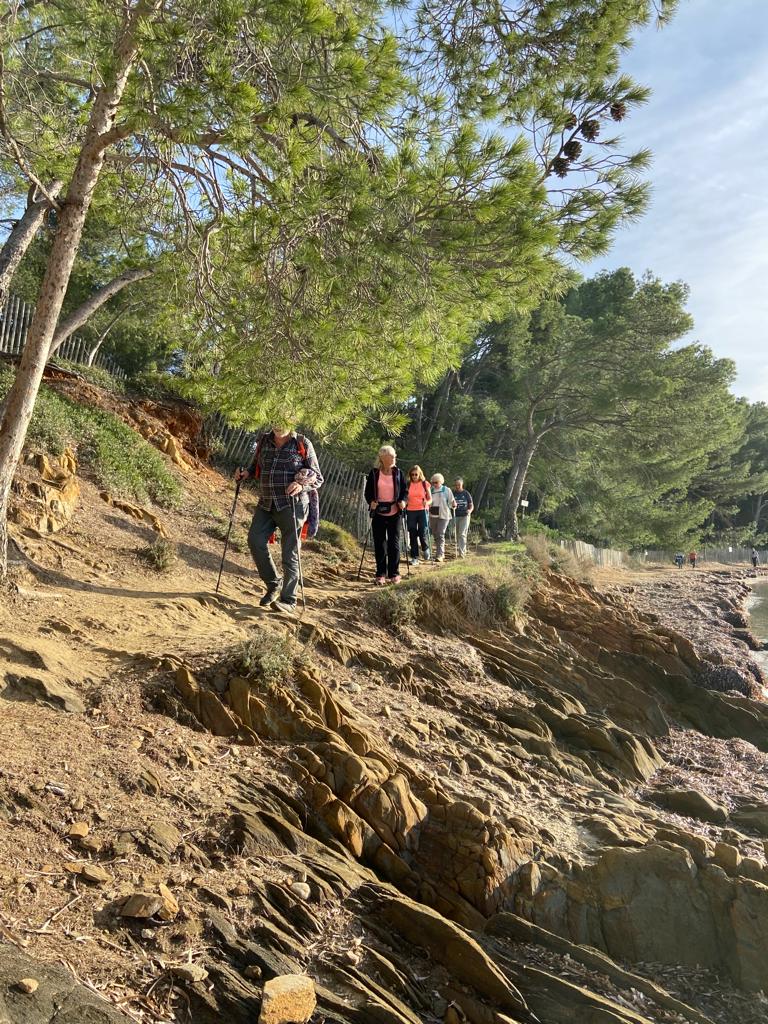 Les paysages majestueux et nombreux points de vue ont enchanté tout le monde : l’orage de la veille a permis une vue magnifique, complètement dégagée, sur la baie de Cavalière et de Pramousquier, puis plus loin sur celle de Bormes, du tombolo de la presqu’île de Giens. Les iles, jusqu’à Porquerolles, étaient visibles.