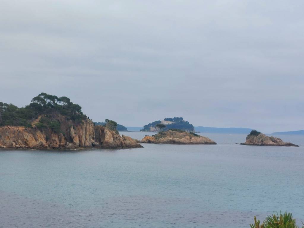 De l’esplanade du Fort (qui ne se visite pas) splendide point de vue sur la Pointe des Mèdes et la mer turquoise, puis nous avons rejoint la plage de l’Alycastre pour pique-niquer en compagnie de goélands intéressés par nos victuailles et celles des plaisanciers au mouillage dans la crique…