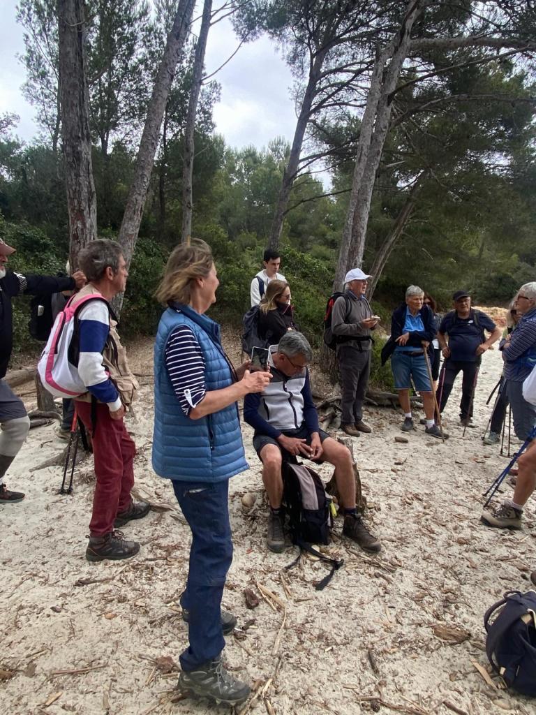 Un peu de géologie (le micachiste à grenats), de la botanique (le ciste cotonneux et le ciste rugueux, l’argelas, l’arbousier et les 5 variétés de chêne de la région !) et beaucoup de plaisanteries ont rythmé notre randonnée.