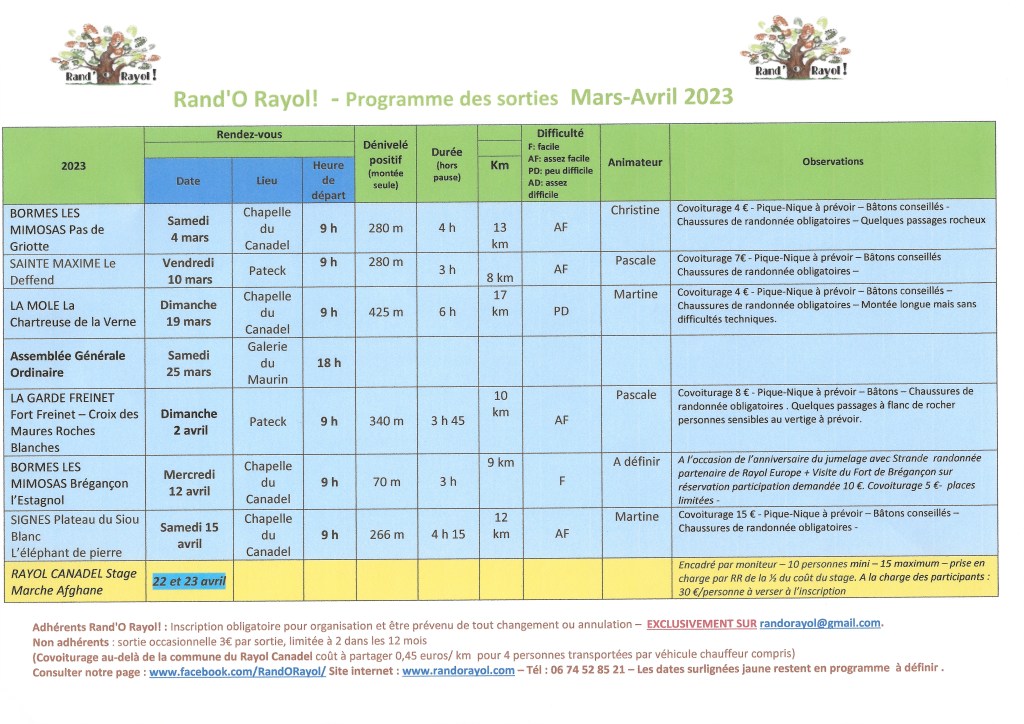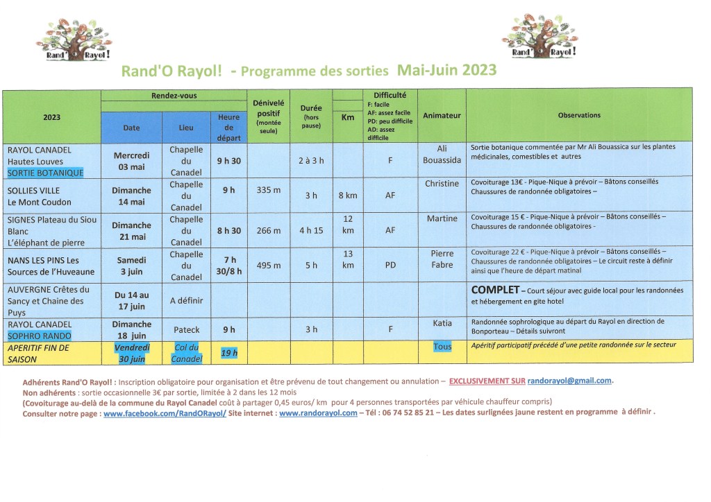 Inscrivez vous sur randorayol@gmail.com !